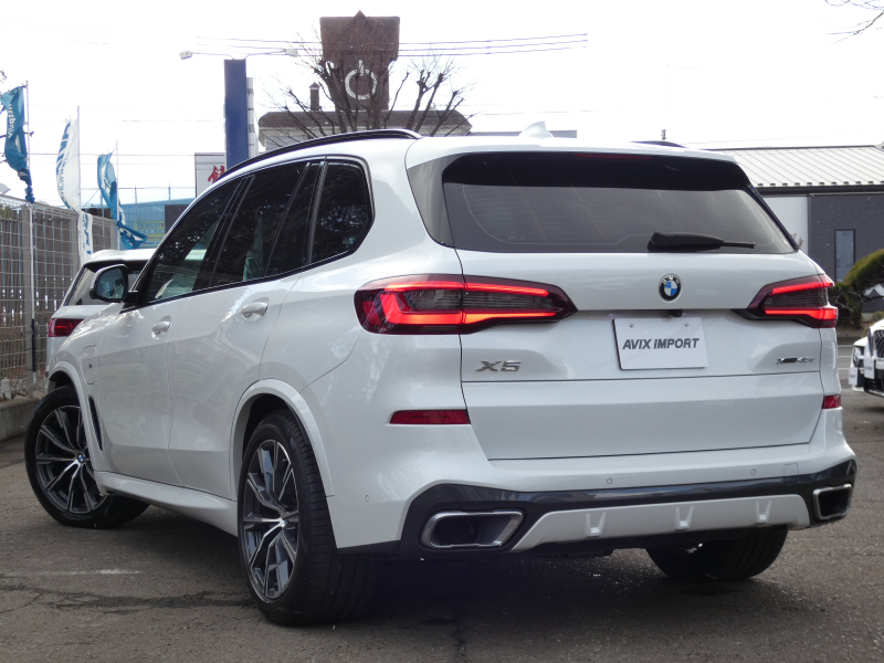 希少で人気のプラグインハイブリッドモデル!! 取説・記録簿付 事故歴ありません!! 綺麗な外装色ミネラルホワイトに、ひときわ目を惹くMスポーツ専用エクステリアと純正20インチアルミホイールやMスポーツならではのブルーカラーブレーキキャリパー、さらにはオプションのBMWレーザーライトが装着されお洒落なエクステリアを演出!! SUV特有の使用感はとても少なく室内は高級感漂うブラックレザーシートに純正オプションのストライプブラウンファインウッドインテリアの組み合わせ!! 快適な全席シートヒーターにプラスパッケージならではの4ゾーンエアコン、保冷・保温機能カップホルダー、ソフトクローズドアも装備され、さらには開放感有るパノラマガラスサンルーフやharman/Kardonサラウンドサウンドシステムがオプション装備!! 使い勝手の良いジェスチャーコントロール付i-Driveナビに運転操作をサポートするパーキングアシストプラス&ヘッドアップディスプレイ、さらにはドライビングアシストプロフェッショナルが完備!! DOHC直列6気筒ツインターボエンジン&電子制御8速スポーツATに4輪アダプティブエアサスペンションが相まってストレスの無いドライビングを可能とし、プラグイン・ハイブリッド・システムが燃費向上を実現!! 税金面においても経済的で初めての方にもおすすめです!! 希少なG05型 X5プラグインハイブリッドモデルをお探しの方は是非お急ぎ下さい!!