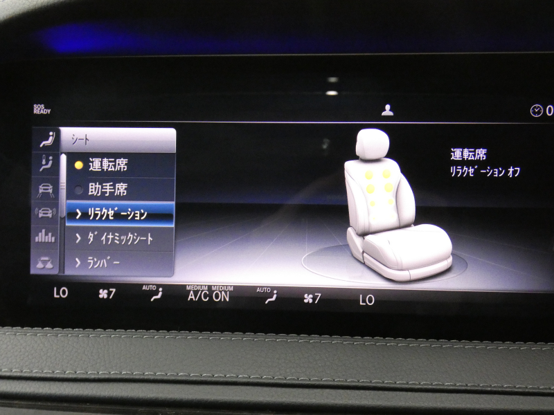 メモリー付パワーシート(運転席・助手席)、電動ランバーサポート(運転席・助手席)、シートヒーター(前席・後席)、シートベンチレーター(前席)、助手席コントロール機能(運転席)、アームレスト(前席・後席)