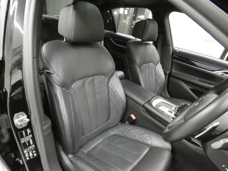 BMWライブ・コックピット( 12.3インチ マルチ・ディスプレイ・メーター・パネル、10.25インチ ワイド・コントロール・ディスプレイ(タッチ・パネル機能付)、HDDナビゲーション・システム(VICS 3メディア対応)、チェック・コントロール(車両機能モニター/警告システム)、マルチファンクション M レザー・ステアリング・ホイール(シフト・パドル付)、電動式チルト&テレスコピック・ステアリング・コラム、可変スピード・リミッター機能、スピーチ・コントロール(音声入力システム)、パーキング・ベンチレーション、4ゾーン・オートマチック・エア・コンディショナー (マイクロ・フィルター〔花粉除去機能付〕、前後左右独立温度調節機能付) 、シート( フロント・コンフォート・シート (電動/バックレスト上部角度、バックレスト幅、サイ・サポート調節機能付)、フロント・ランバー・サポート 、フロント・アクティブ・ベンチレーション・シート )、シート・ヒーティング(フロント&リヤ) 、エクスクルーシブ・ナッパ・レザー・シート、 レザー・フィニッシュ・ダッシュボード(インスツルメント・パネル上部、ドア・トリム上部)、インテリア・トリム(ファインライン・ブラック・ウッド・トリム/ハイグロス・メタル・エフェクト )ドア・シル・プレート 、BMW Individual アンソラジット・ルーフ・ライニング 、 ベロア・フロア・マット、フロント・センター・アームレスト(収納ボックス付)、リヤ・センター・アームレスト、カップ・ホルダー(フロント&リヤ)、照明付グローブ・ボックス 、 自動防眩ルーム・ミラー 、照明付バニティ・ミラー(運転席&助手席)、 残光照明機能付ルーム・ライト 、アンビエント・ライト (シート足元〔フロント&リヤ〕、インナー・ドア・ハンドル、ドア・ポケット〔フロント&リヤ〕、フロント・シート・バックレスト背面)、クライメート・コンフォート・ガラス(赤外線反射ガラス:全面) 、パワー・ウインドー (フロント&リヤ:挟込防止機能、コンフォート・オープン/クローズ機能、ワンタッチ機能、リヤ:セーフティ・ロック付)、コントロール・ディスプレイおよびインフォメーション・ディスプレイの日本語/英語表示機能、インテグレイテッド・オーナーズ・ハンドブック、iDriveコントローラー (コントロール・ディスプレイ用、ダイレクト・メニュー・コントロール・ボタン、タッチ・パッド付)、BMWジェスチャー・コントロール 、BMWインテリジェント・パーソナル・アシスタント(AI音声会話システム)、プログラマブル・ボタン、オーディオ・ビジュアル・システム (AM/FMラジオ、地上デジタルTVチューナー〔12セグ/ワンセグ自動切替〕)、USBオーディオ・インターフェイス、ワイヤレス・チャージング、harman/kardon サラウンド・サウンド・システム(600W、16スピーカー、9チャンネル・サラウンド)、ハンズフリー・テレフォン・システム、ITSスポット対応DSRC車載器(ルーム・ミラー内蔵、ETC機能付)