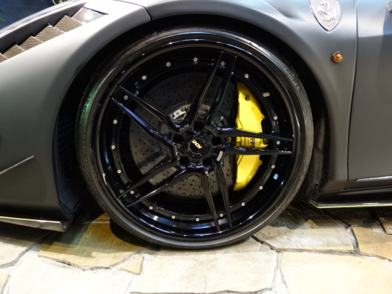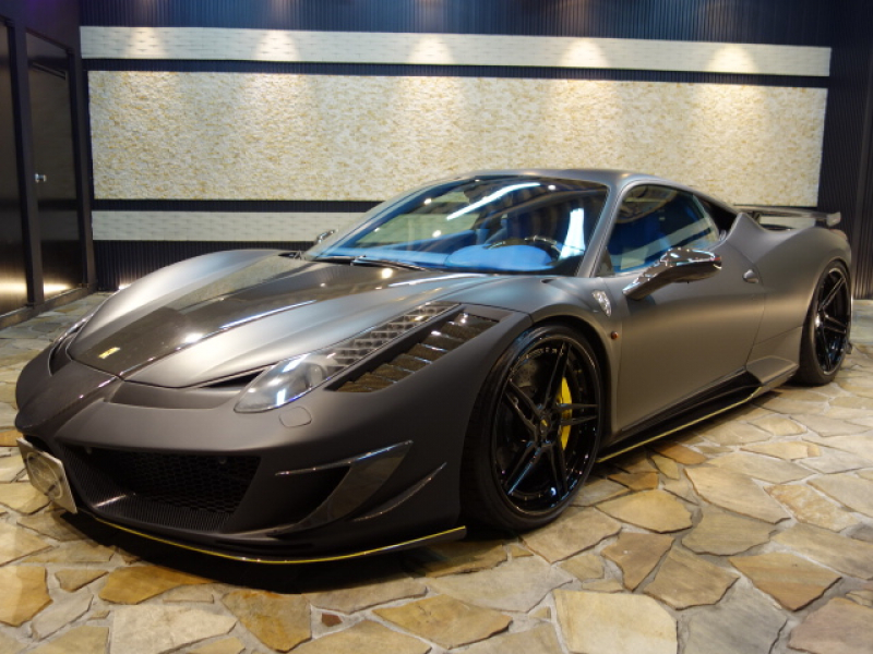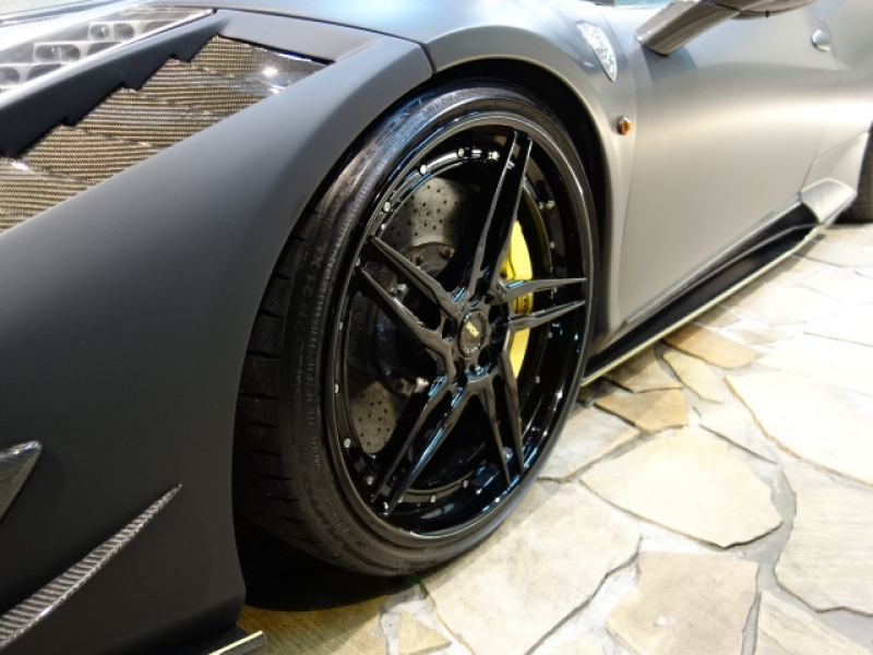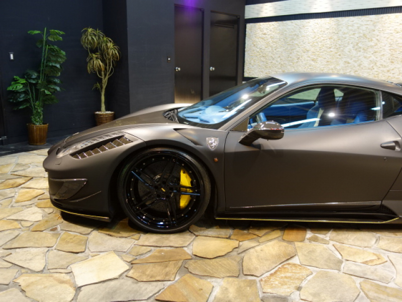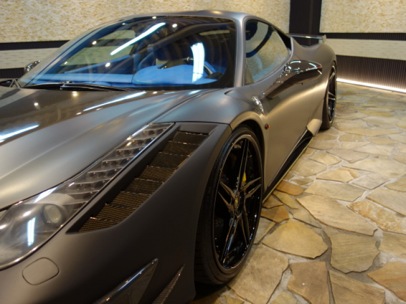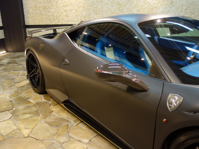 フェラーリ 458イタリア MANSORYボディーKIT マットブラックラッピングフィルム施工