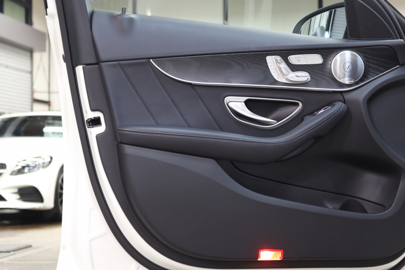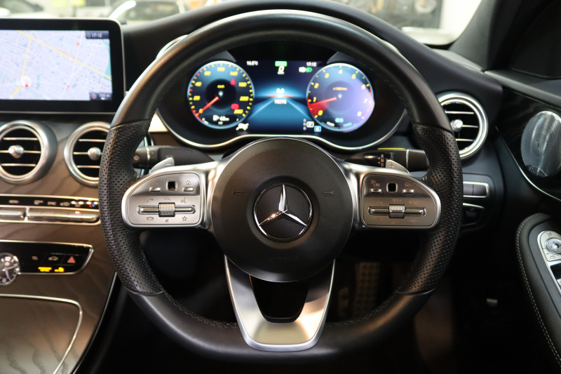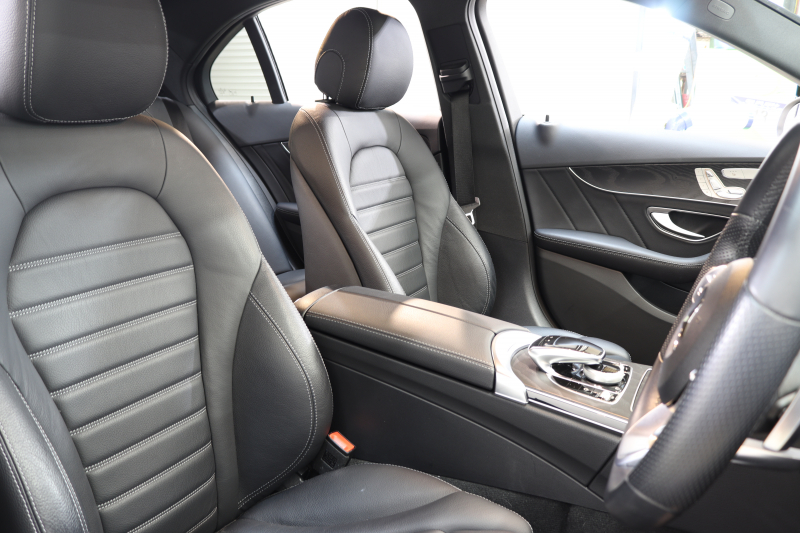 メルセデスベンツ Cクラス C200 AVG AMGライン レザーエクスクルーシブ&レーダーセーフティPKG BSG搭載 後期 1オーナー MEコネクト キーレスゴー 黒本革 ヘッドアップD HDDナビTV スマホ連携 ブルメスター バックカメラ PTS LEDライト 自動トランク ハンズフリーA AMGエアロ&18AW エアサス 9AT 2年保証