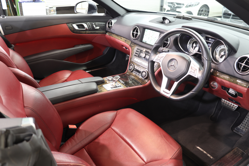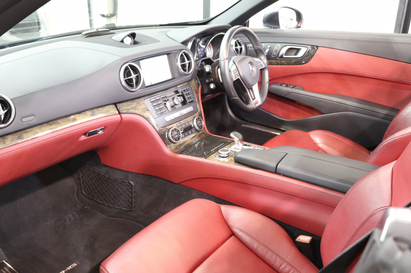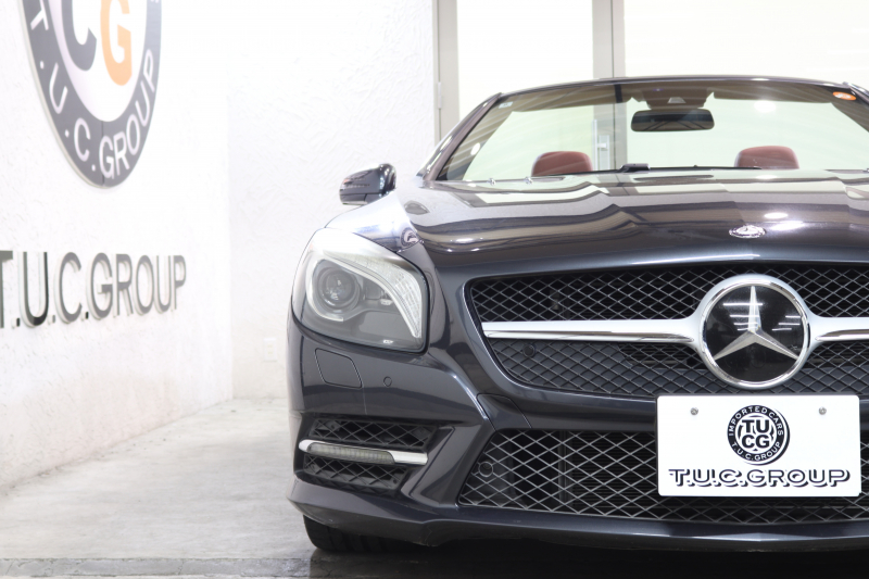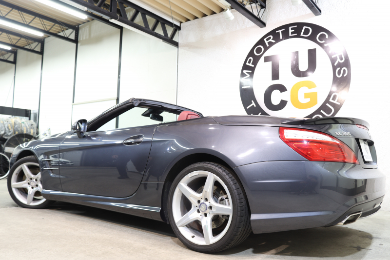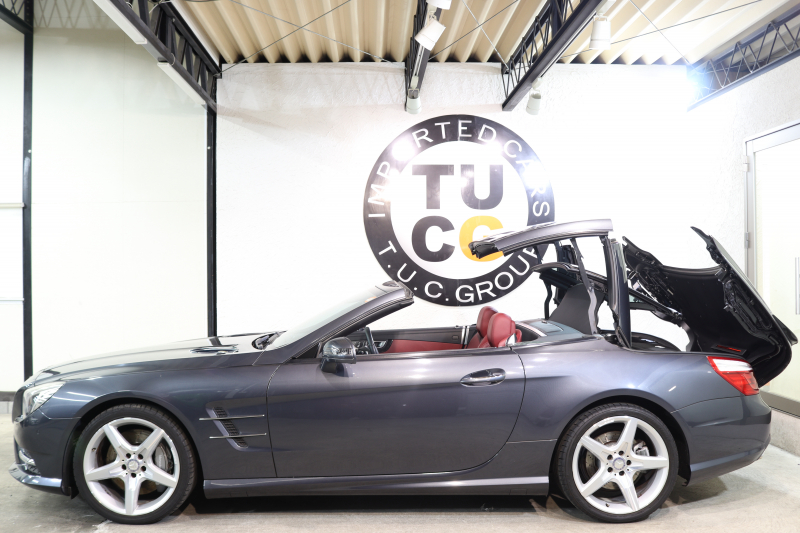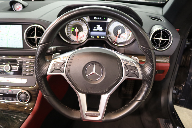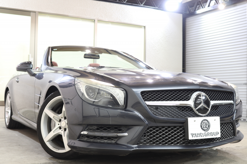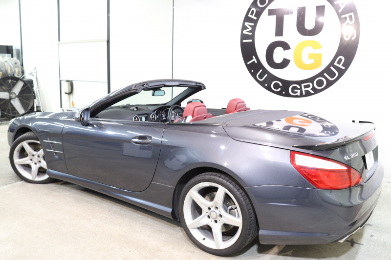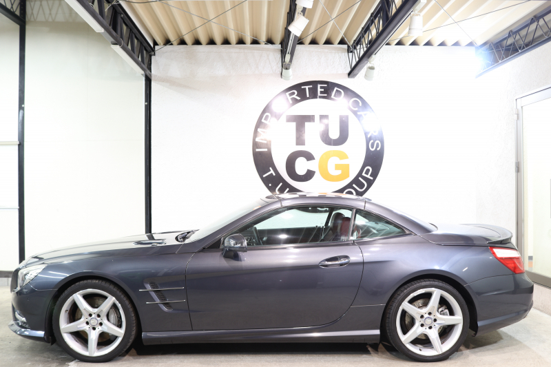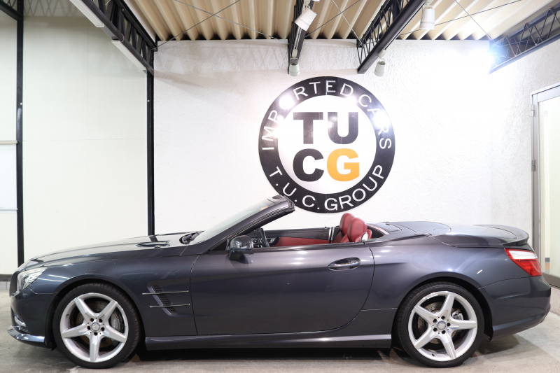 メルセデスベンツ SLクラス SL350 AMGスポーツ&レーダーセーフティPKG キーレスゴー 赤本革 エアスカーフ マジックスカイR HDDナビTV BT音楽 バックカメラ PTS キセノン ハンズフリーA AMGエアロ&19AW 7AT 希少色テノライトグレー 2年保証