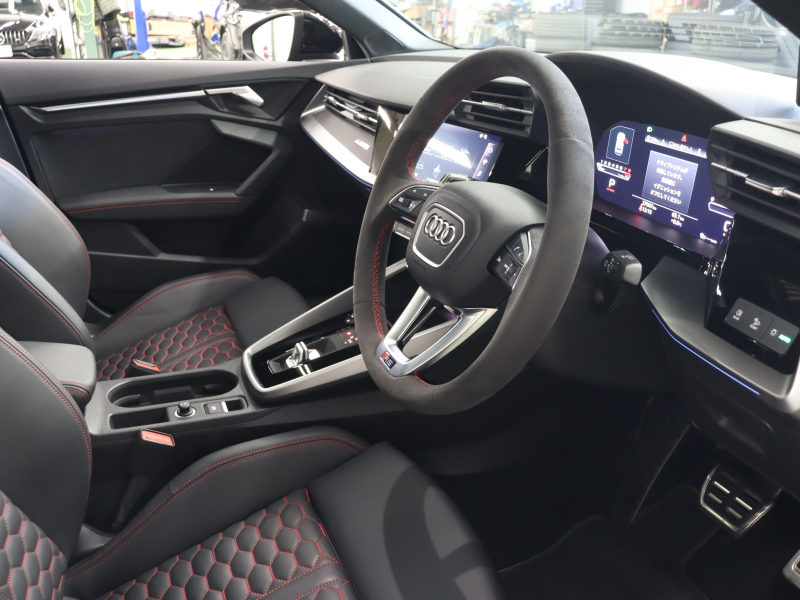 アウディ RS3 ベースグレード RSデザイン & レッド ブラックスタイリングPKG 黒革シート パノラマSR MMIナビTV Bang&Olufsen Bluetooth Bカメラ Carplay マトリクスLEDライト バーチャルコクピット RSスポーツサスペンション 純正19インチAW 2年保証付