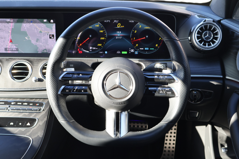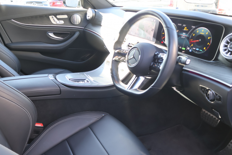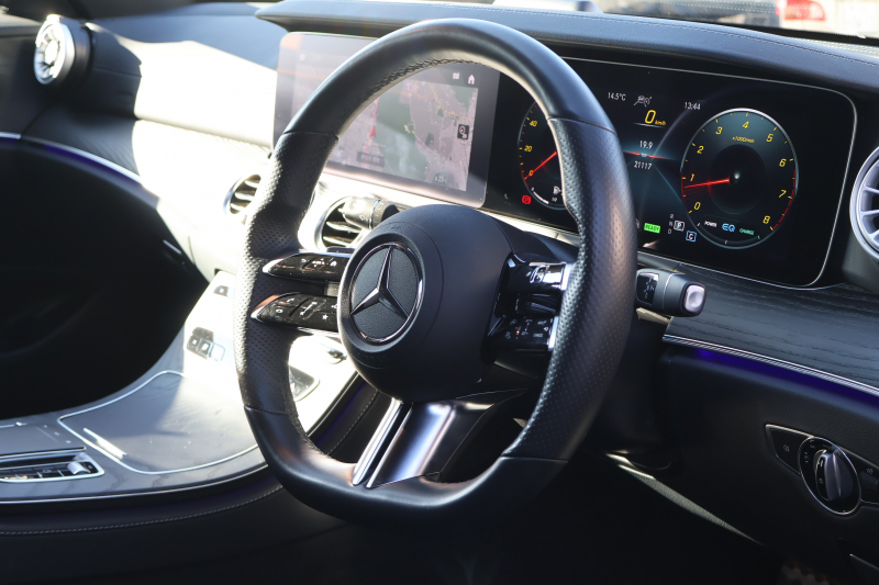 メルセデスベンツ Eクラス E200 スポーツ(BSG搭載モデル) 後期型 AMGラインインテリアPKG エクスクルーシブPKG レーダーセーフティPKG パノラマSR 黒ナッパ革 シートヒータ MBUX 純正ナビ地デジ AppleCarPlay 360°カメラ Burmester ワイヤレスチャージング HUD PTS AMG19インチAW 2年保証