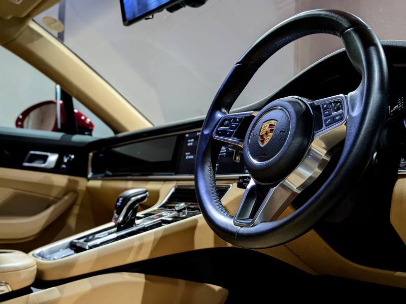 ポルシェ パナメーラ 3.0 V6 ベージュレザーシート シートヒーター エントリードライブ PASM デジタルインナーミラー ブラックペイント19インチAW スポーツデザインミラー
