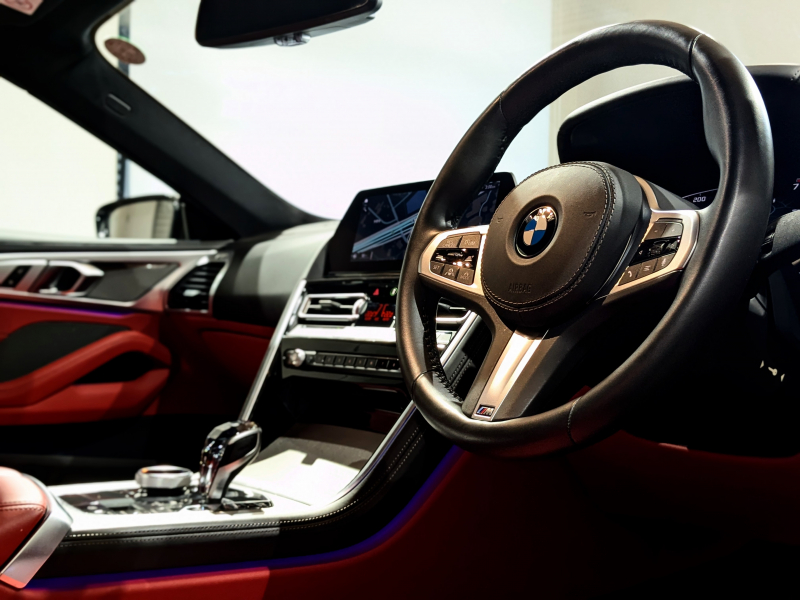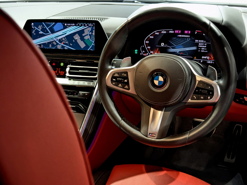 BMW 8シリーズ M850i xDrive coupe エクステンドレッド×ブラックメリノレザー 受注生産Mカーボンファイバールーフ カーボンリップスポイラー HUD 20インチアルミホイール ハーマンカードンサウンド