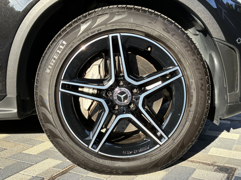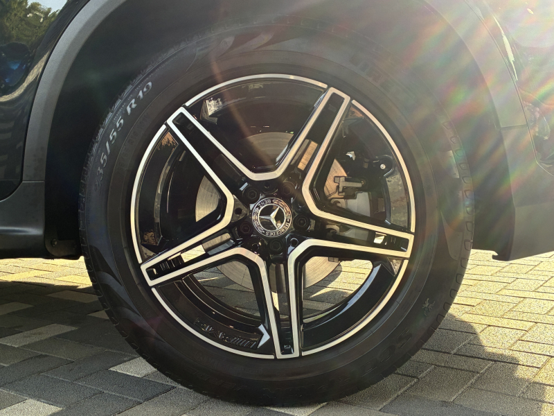 足回りには迫力のある19インチAMG5ツインスポークアルミホイールを採用しています。しっとりとした艶感あふれるハイグロスブラックペイントを施したホイールが足元をスポーティに引き締めます。