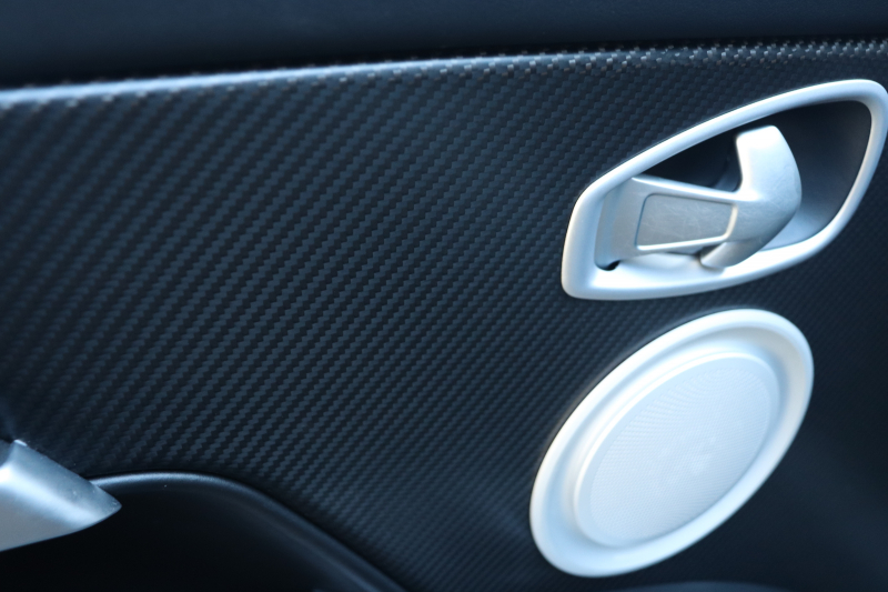 サテン仕上げの2×2ツイルカーボンファイバー・トリムインレイや、アルカンターラのヘッドライニングといった要素が、インテリア全体を引き締めています。