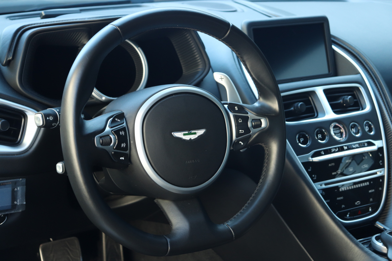20インチ・10スポークのブラックホイール(つや消し)や、Aston Martinの機械加工カーボンファイバーウィング&スクリプトバッジが、静かな中にも確かな特別感を添えています。