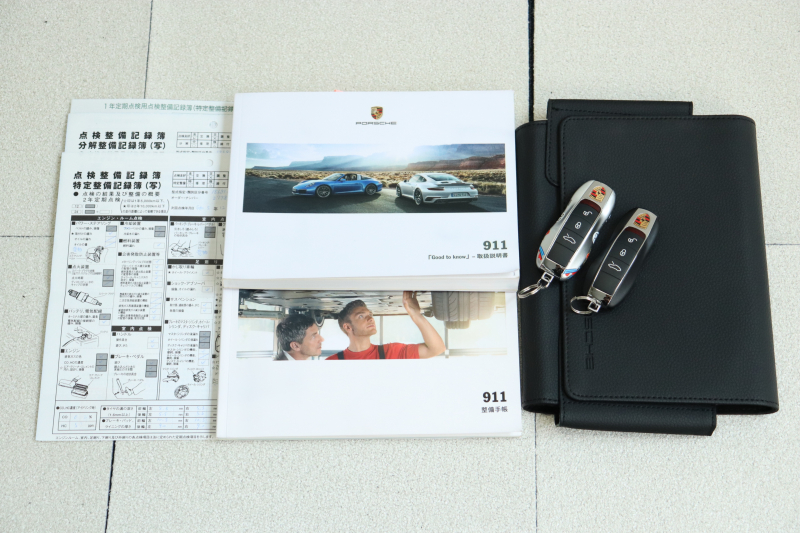 取扱説明書・整備手帳・整備記録簿4枚・スペアキー。こうした備品が揃っていること自体、前オーナーの車との向き合い方を静かに語っています。